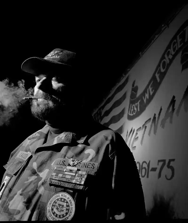 Private First Class Raymond Michael "Red" Clausen Jr. For conspicuous gallantry and intrepidity at the risk of his life above and beyond the call of duty while serving with Marine Medium Helicopter Squadron 263 during operations against enemy forces. Participating in a helicopter rescue mission to extract elements of a platoon which had inadvertently entered a minefield while attacking enemy positions, Pfc. Clausen skillfully guided the helicopter pilot to a landing in an area cleared by one of several mine explosions. With 11 marines wounded, and one dead, and the remaining eight marines holding their positions for fear of detonating other mines, Pfc. Clausen quickly leaped from the helicopter and, in the face of enemy fire, moved across the extremely hazardous mineladen area to assist in carrying casualties to the waiting helicopter and in placing them aboard. Despite the ever-present threat of further mine explosions, he continued his valiant efforts, leaving the comparatively safe area of the helicopter on six separate occasions to carry out his rescue efforts. On one occasion while he was carrying one of the wounded, another mine detonated, killing a corpsman and wounding three other men. Only when he was certain that all marines were safely aboard did he signal the pilot to lift the helicopter. By the courageous, determined, and inspiring efforts in the face of the utmost danger, Pfc. Clausen upheld the highest traditions of the Marine Corps and of the U.S. Naval Service.